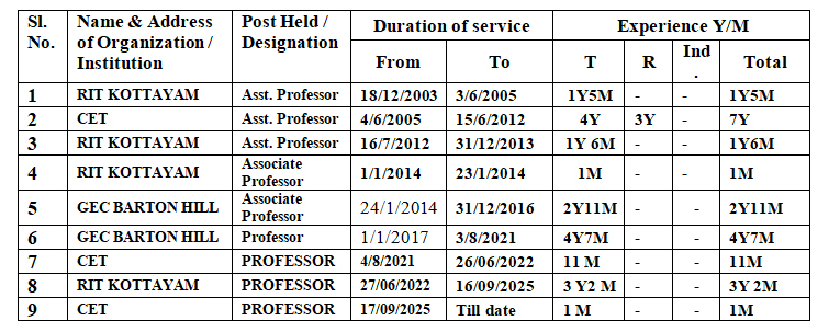 Head of the Department (CE) at RIT Kottayam from 17/03/2025 to 16/09/2025